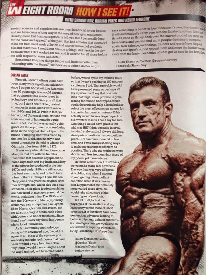 Sve u svemu, po njemu sprave, ishrana i način treniranja više-manje nisu napravile neki napredak/boljitak u odnosu na vreme kada se on takmičio, jedino je otkriven HIIT kao dobra stvar i postoji šira lepeza suplemenata.